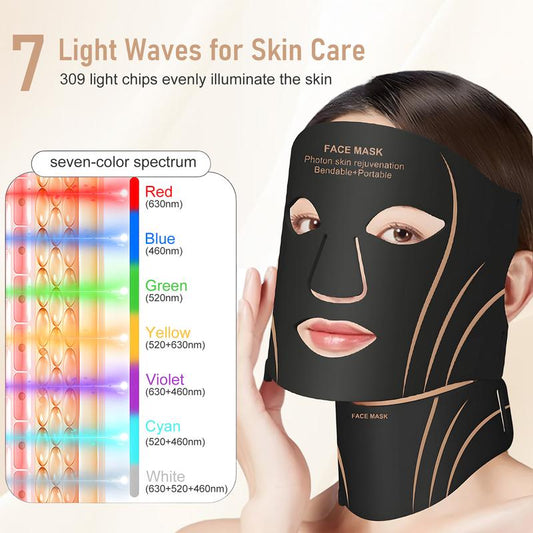 Light Therapy for Face & Neck, 7 Modes Portable with Remote Control, Advanced Skincare Made Easy,Timing Function